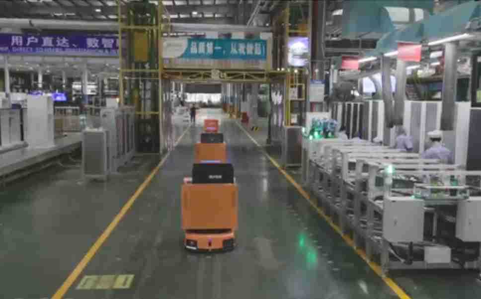 为车载冰箱物流配送打造的智能解决方案,,包含产中物流通过潜伏举升AMR搬运至线边,,,,产后成品物流智能仓储,,流程包含产中物流智能齐套入库,,,线边安灯叫料AMR智能配送至线边,,,成品入库、、、、出库,,通过无人堆高车机器人,,,智能仓储管理替代人工作业管理,,实现更高存储、、更高效率、、、更具柔性化的解决方案。。。。